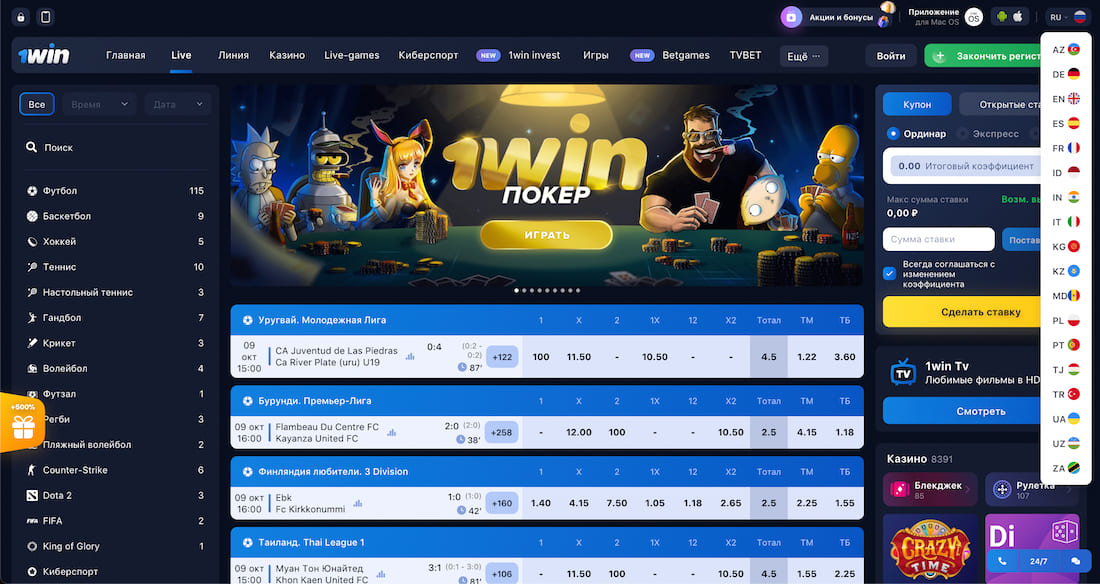 Одним из ключевых преимуществ 1 вин является удобный и интуитивно понятный интерфейс. Все основные разделы находятся в быстром доступе, что облегчает навигацию и позволяет легко переключаться между лайв-ставками и прематчами. Процесс оформления купона прост и удобен даже для новичков.